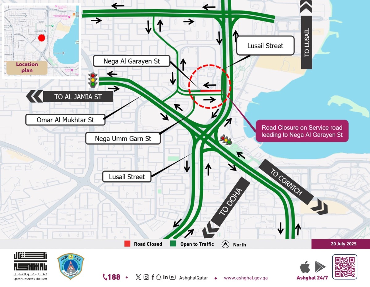 Ashghal urges all road users to follow the temporary signage and reroute to nearby streets to reach their destinations and ensure a smooth flow of traffic during the maintenance period.