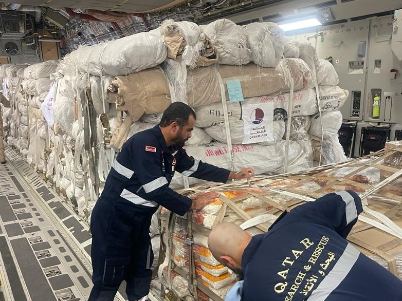 Qatar Fund for Development, in cooperation with the Qatari Amiri Air Force, transferred this aid through the Permanent Committee for Rescue, Relief and Humanitarian Aid in the afflicted areas in brotherly and friendly countries, in coordination with the designated authorities to deliver the aid to those affected.