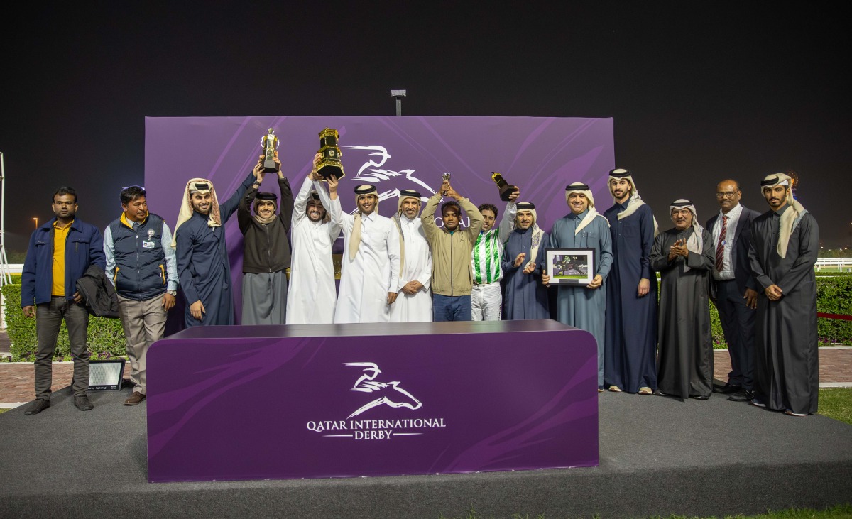 Abdulrahman bin Abdulla Al Malki, Assistant Undersecretary of the Ministry of Sports and Youth crowned the winners of the Qatar International Derby. Ali bin Yousef Al Kubaisi received the trophy on behalf of Wathnan Racing.