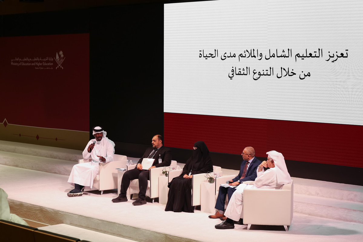 The second session, "Enhancing Inclusive and Lifelong Education through Cultural Diversity," focused on ways to employ the arts in supporting sustainable education goals and strengthening cultural identity. A group of academics from Qatar University and the Ajyal Educational Center participated in the discussion.