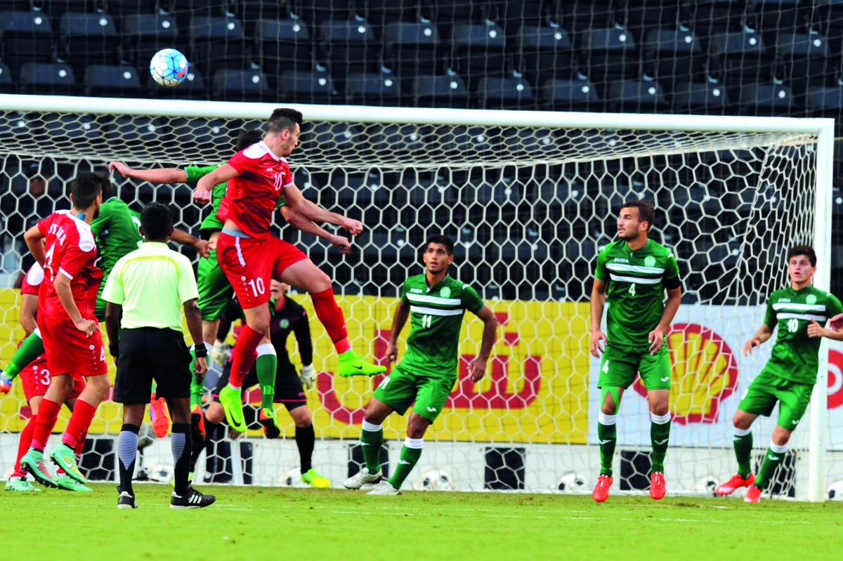 Syria had their first sight at goal in the 22nd minute, when Moumen Naji’s goal-bound shot came off the shoulder of Ashrov Mekan and looped in dangerously, but goalkeeper Berdiyev Dovletyar kept it out for a corner.