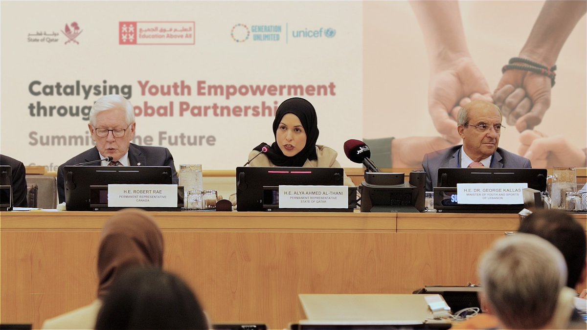The session was chaired by the Permanent Representative of the State of Qatar to the United Nations HE Sheikha Alya Ahmed bin Saif Al Thani, and featured participation from the Minister of State for International Cooperation HE Lolwah bint Rashid Al Khater, alongside numerous ministers, distinguished figures, representatives from the United Nations, youth advocates.