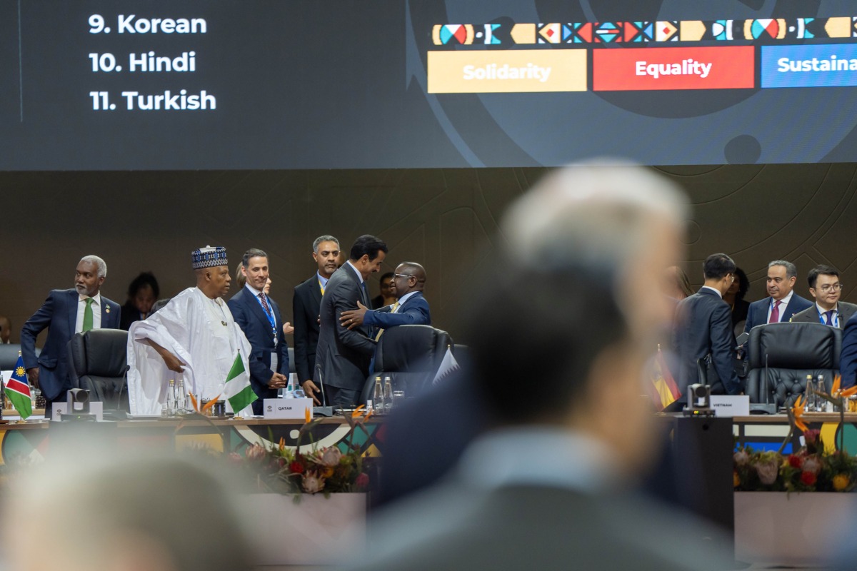 Johannesburg: The Amir HH Sheikh Tamim bin Hamad Al-Thani took part in the G20 Summit 2025, held under the theme "Solidarity, Equality, Sustainability" at the Johannesburg Convention Centre in Johannesburg, South Africa.
