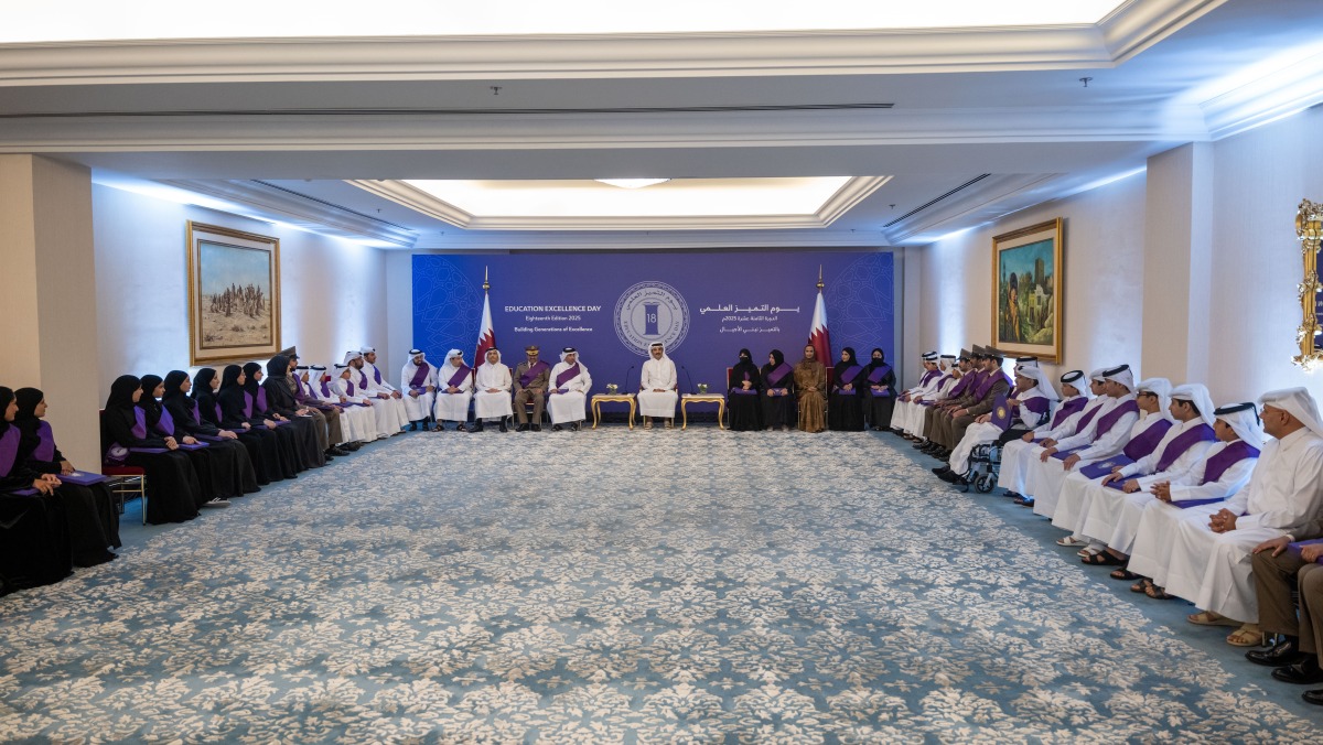 Doha, Qatar: The Amir HH the Amir Sheikh Tamim bin Hamad Al Thani met with the winners of the 18th Education Excellence Day Award on the sidelines of the ceremony held at the Sheraton Doha Hotel on Sunday morning.