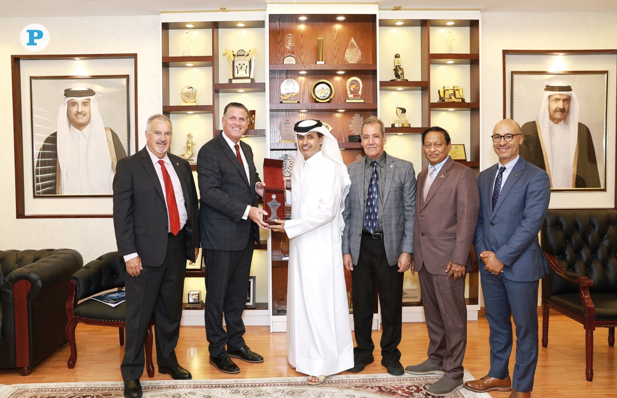Editor-in-Chief of The Peninsula Dr. Khalid Al-Shafi with Bridgewater State University delegation including Frederick Clark, President, (second left); Doug Shropshire, Vice-President and Chief Financial Officer (first left); Dr. Jabbar Al Obaidi, Professor of Media Studies and Communication Technologies, Academic Director of Global Programs (fourth left); Dr. Madhu N Rao, Professor of Geography and Director, Center for Middle East Studies (fifth left); and Dr. Jakari Griffith, Interim Assistant Provost for Global Engagement (sixth left).