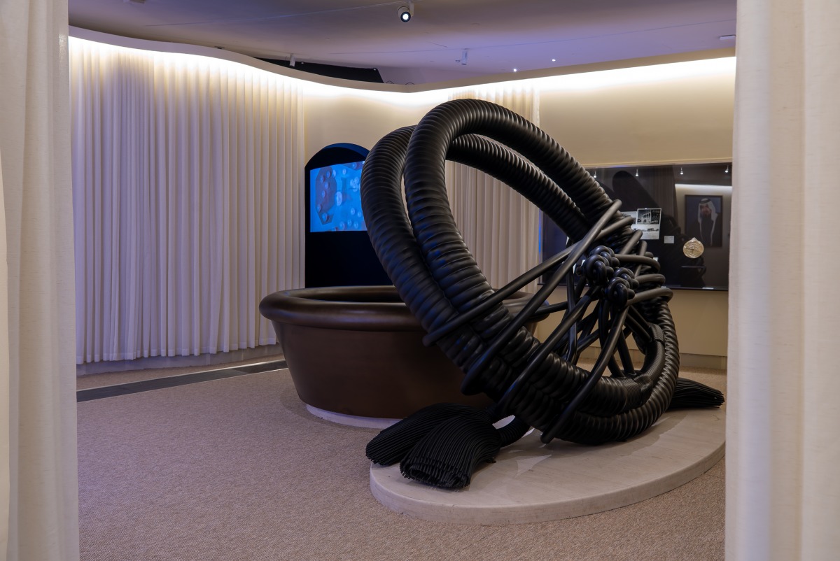 The site-responsive installation by Qatari artist Shouq Al Mana, reimagine the original Earth Dome as a tribute to technological innovation and national identity. The work recalls the 1975 display that paired a Quranic verse with a visualisation of Earth’s formation, narrating Qatar’s transformation from an island to a Gulf nation. The reinterpreted Earth Dome includes a slightly parted egal, a subtle homage to H.H. Sheikh Khalifa bin Hamad Al Thani’s distinctive way of wearing it—a gesture that became an enduring symbol of Qatari heritage. While Khalifa Al Thani’s installations reflect on the nation’s evolving cultural identity.Our Past is the Foundation; Our Future is Built Upon It uses TV installations and AI animation to reanimate the Old Palace’s architecture and history.