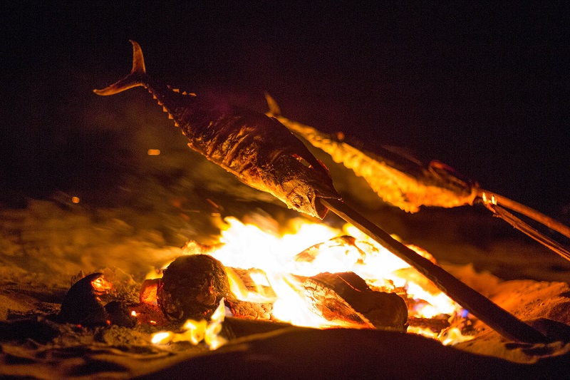 A fresh catch cooks in a beach bonfire in Taiba, Brazil. Picture: Courtesy of Analice Diniz