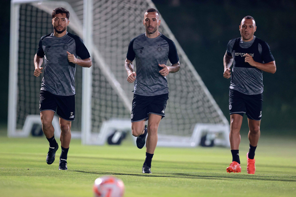 Al Sadd's Rodrigo Tabata, Guilherme and Santi Cazorla during a training session.