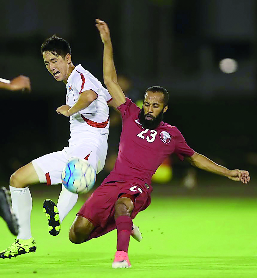 Action during the friendly match between Qatar and North Korea at Aspire Academy football pitch on Thursday. Qatar displayed a dominating show against their opponents to claim a comprehensive 2-0 victory.