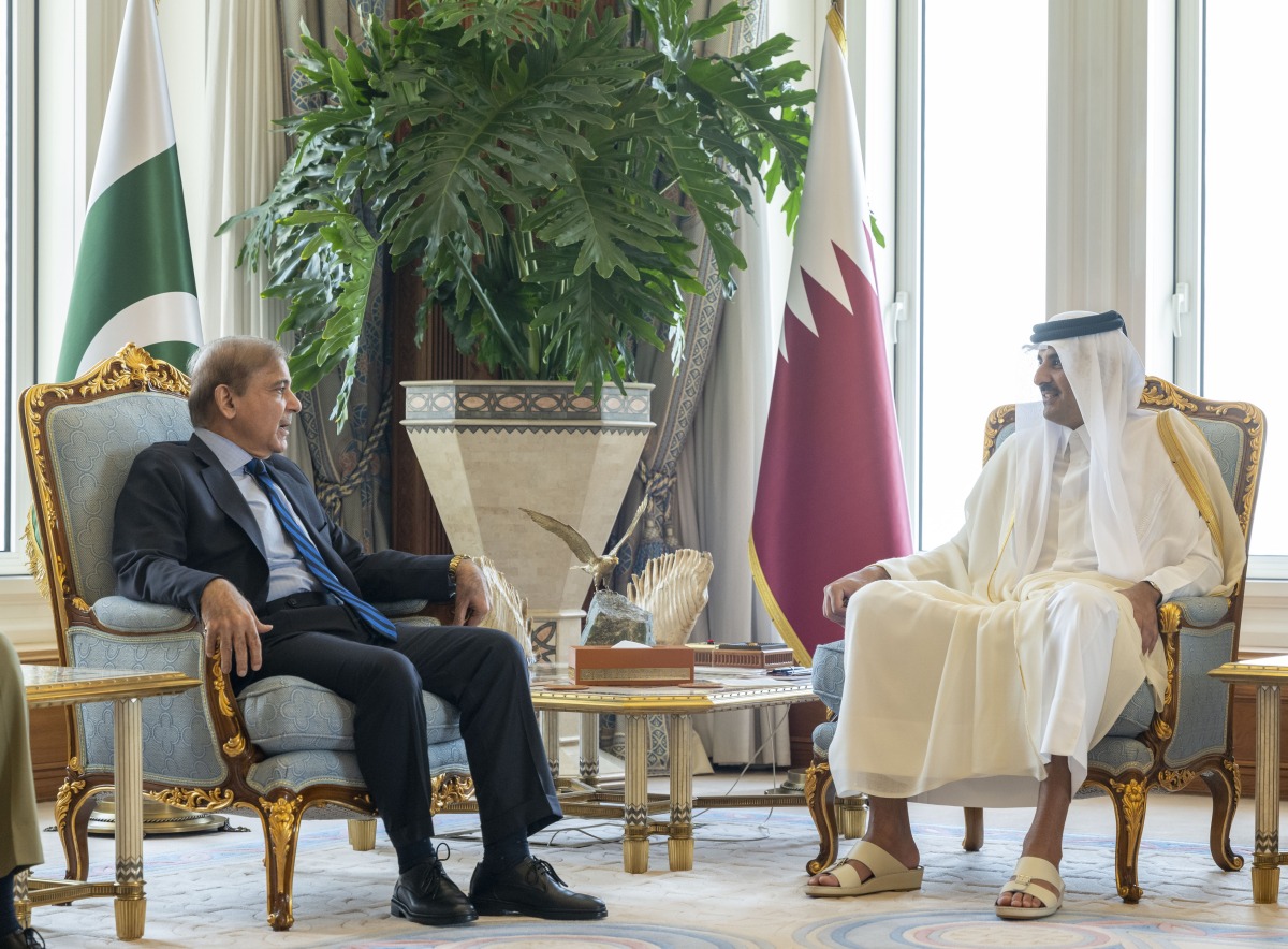 The Amir HH Sheikh Tamim bin Hamad Al-Thani and Prime Minister of the Islamic Republic of Pakistan HE Shehbaz Sharif held an official talks session at His Highness' Amiri Diwan office on Wednesday morning.
