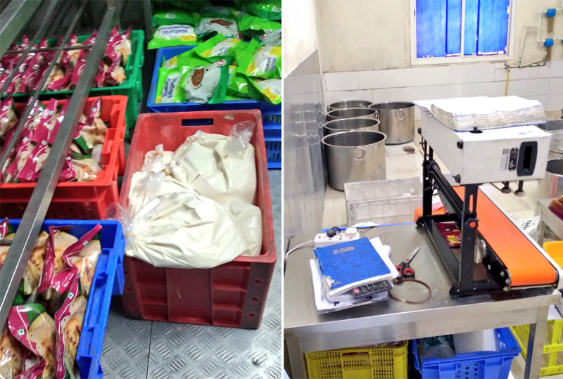 During the inspection of the villa, it was found that they have setup a small manufacturing unit, which was used to make ethnic food products, inside the premises. The officers also seized the food products stored at the facility, which was located in a family residential area.