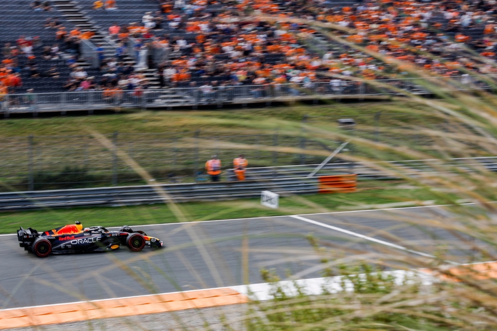 Red Bull Racing's Dutch driver Max Verstappen drives during the first practice session at The Circuit Zandvoort, ahead of the Dutch Formula One Grand Prix, in Zandvoort on August 25, 2023. Photo by Simon Wohlfahrt / AFP