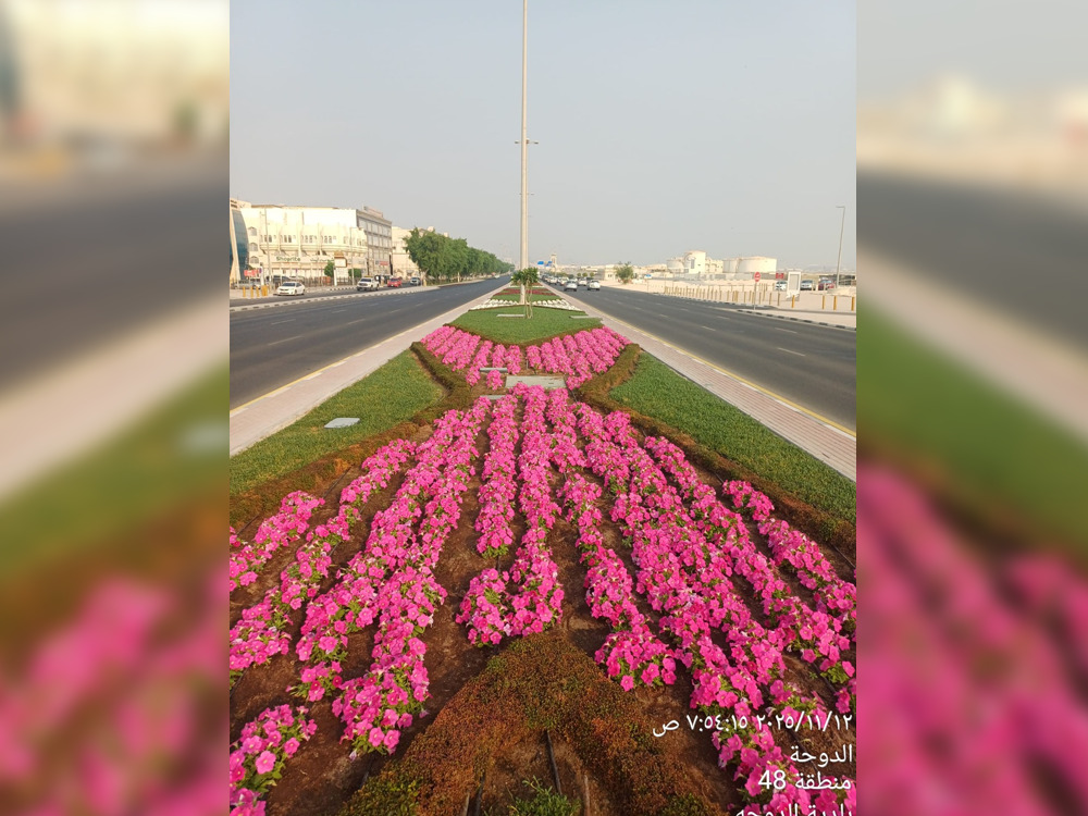 More than 12 locations have been planted, including the new airport road with 160,000 seedlings of petunias and marigolds, with an area of 16,600 square meters. In addition to other places and public parks in tourist areas, such as Legtaifiya Lakes, West Bay area, and Al Dafna Park.