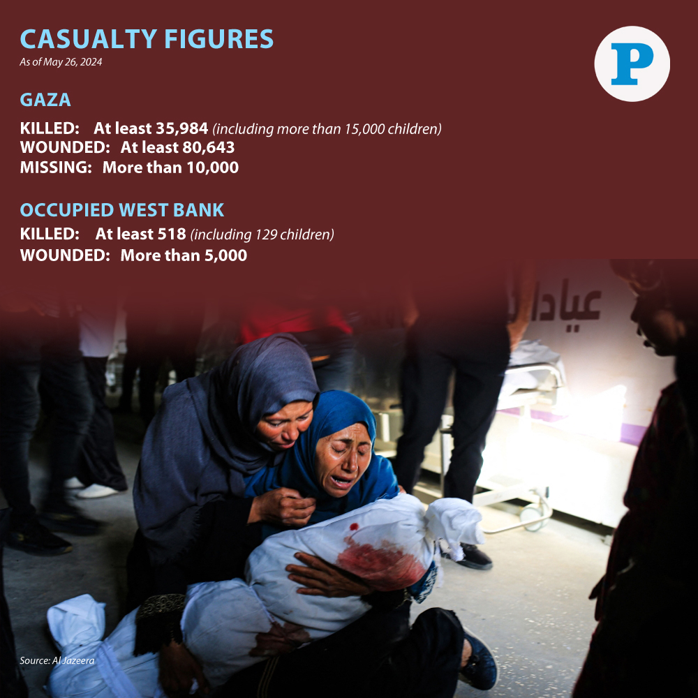 Gaza: The Israeli occupation murdered at least 35,984 Palestinians and injured at least 80,643 others since the beginning of its ongoing aggression on the Gaza Strip since October 7, 2023.