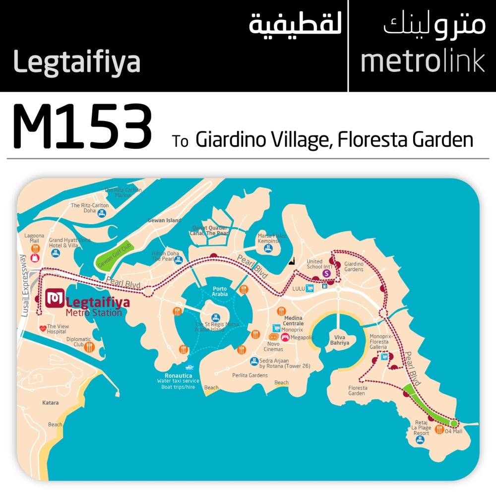 Meanwhile, the M153 metrolink will operate from Legtaifiya metro station to cover Giardino Village, Floresta Gardens in the Pearl Island.