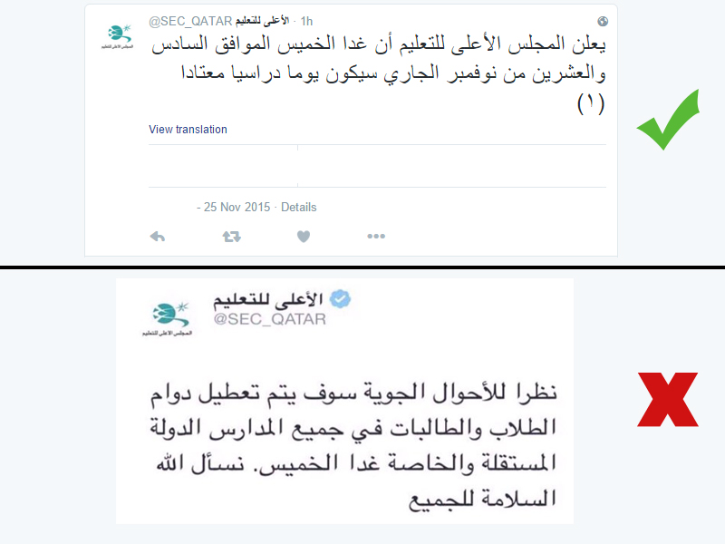 Qatar Meteorology Department and Ministry of Education of the weather situations and precautionary measures.