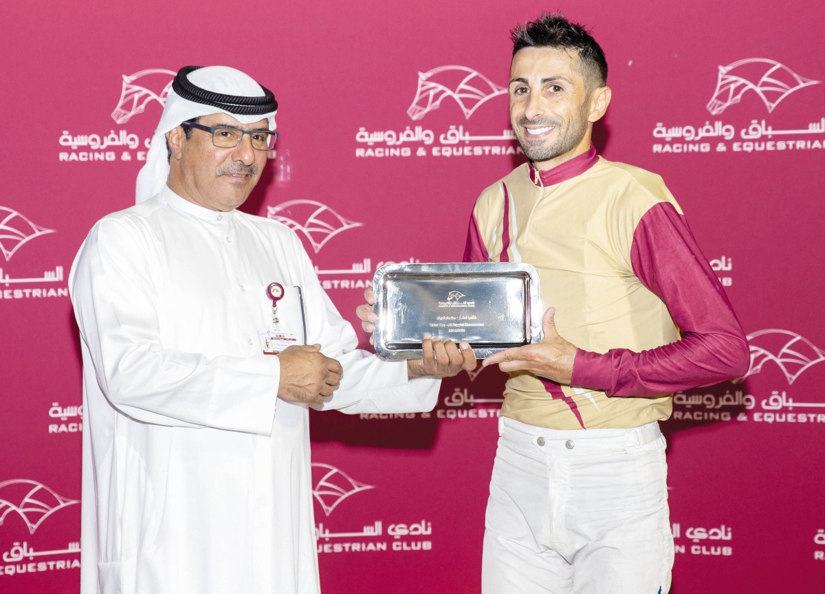 Venedegar, helmed by Marco Casamento, finished the Thoroughbred Conditions (Class 2) on second position while Soufiane Saadi rode Roman Melody to third place. The winners of the QR100,000 feature were honoured by QREC Racing Manager Abdulla Rashid Al Kubaisi.