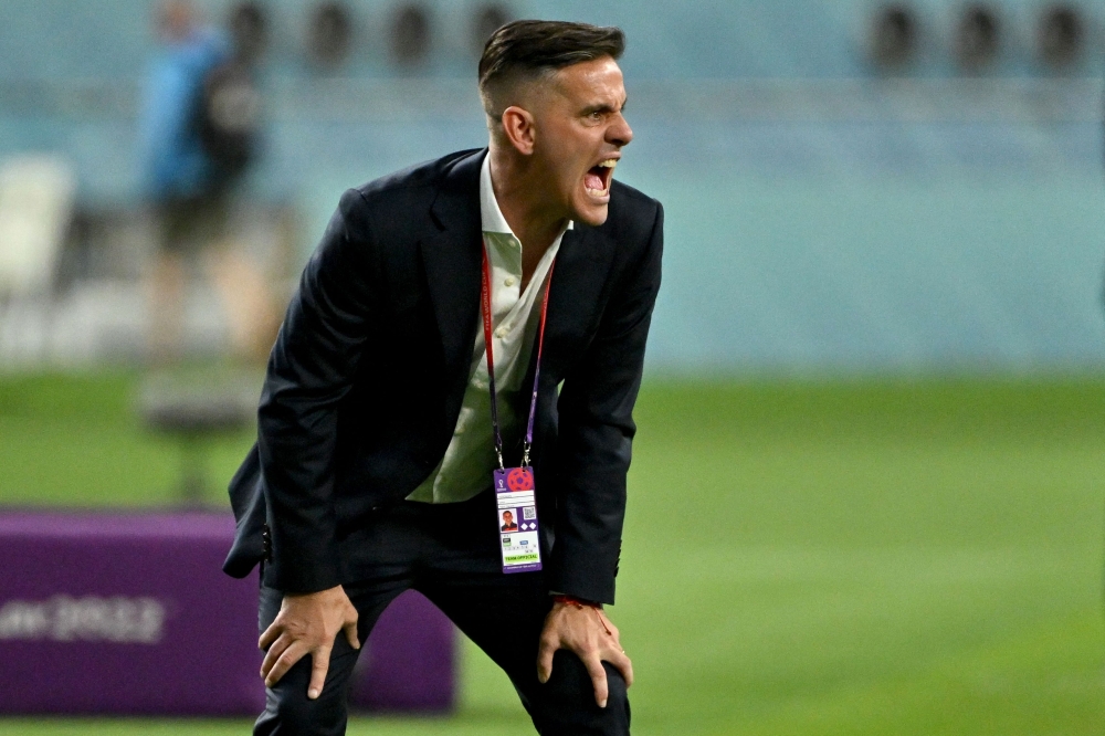 Canada's English coach John Herdman reacts on the touchline during the Qatar 2022 World Cup Group F football match between Croatia and Canada at the Khalifa International Stadium on November 27, 2022. (AFP/Patrick T. Fallon)