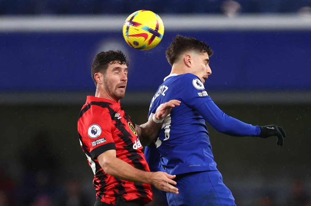 Chelsea's Kai Havertz in action with AFC Bournemouth's Marcos Senesi. (Reuters/David Klein )