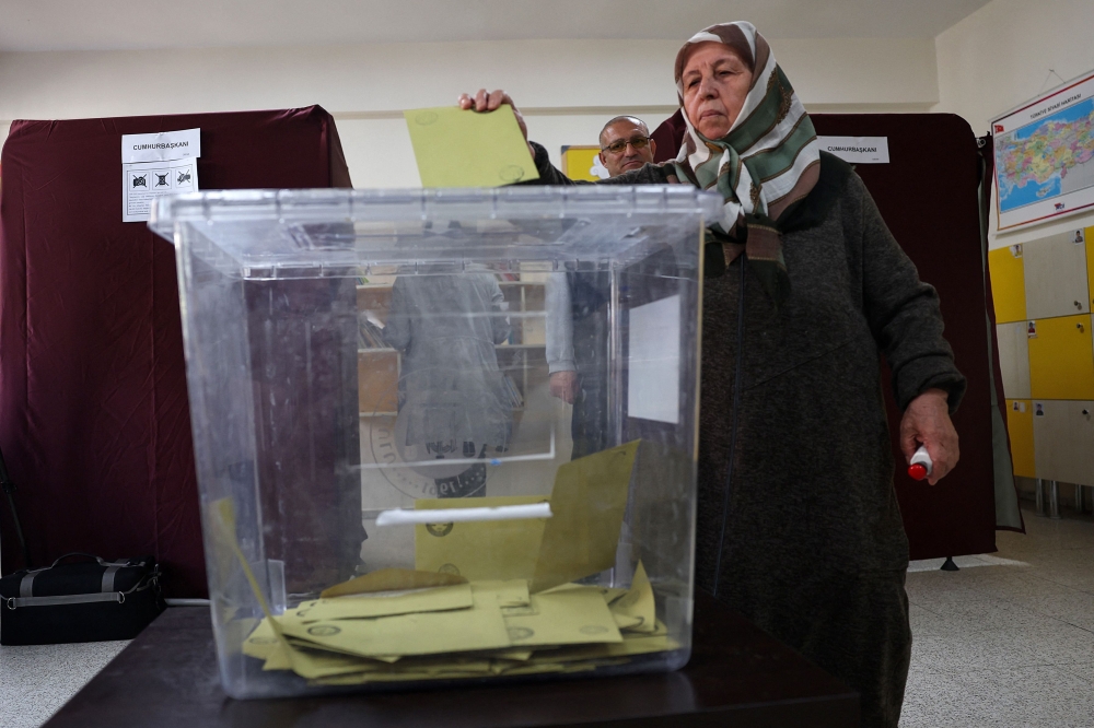 A woman casts her ballot at a polling station during the presidential elections in Istanbul on May 28, 2023. (Photo by Ozan Kose / AFP)