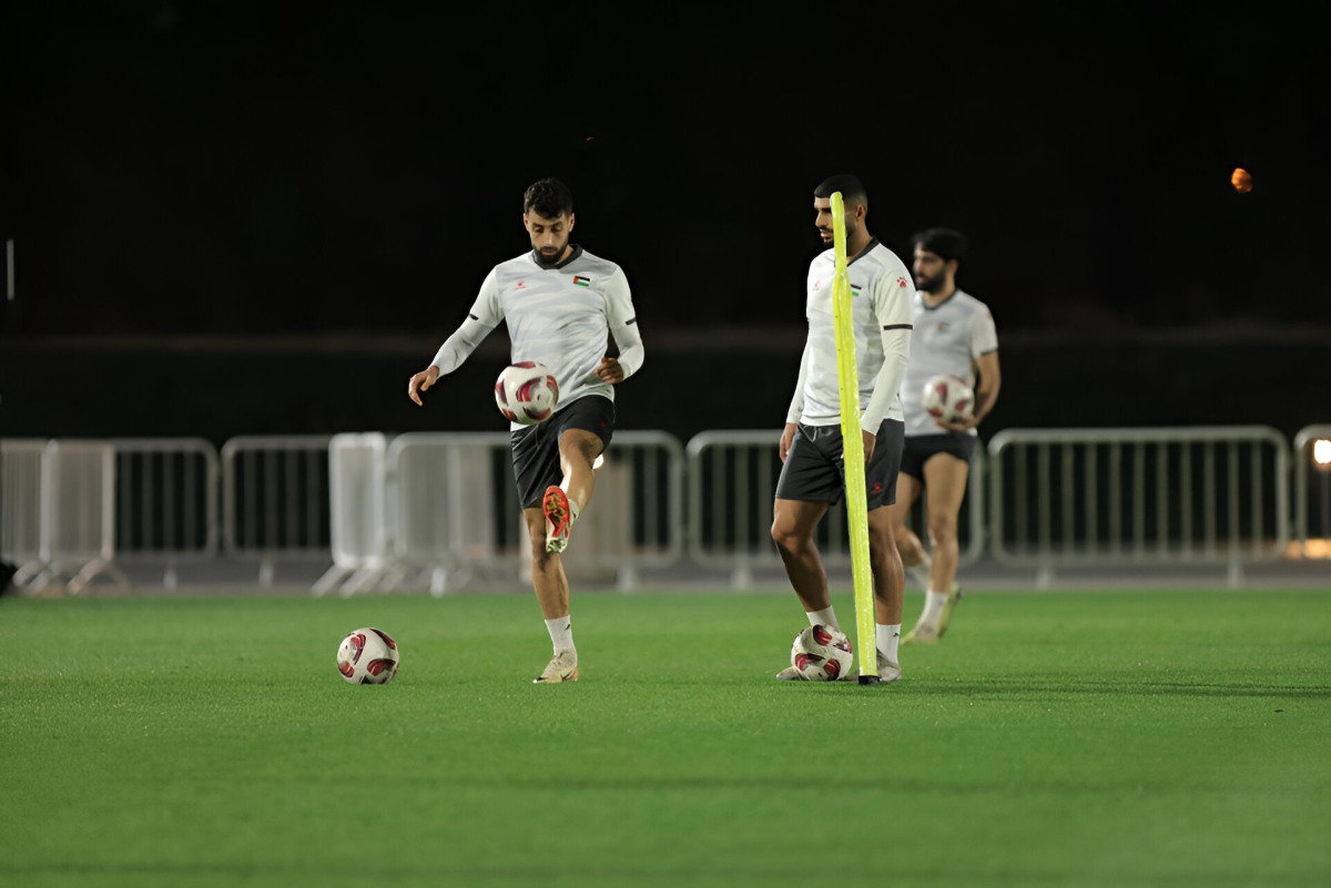 Qatar players during a training session ahead of their Round of 16 clash against Palestine.