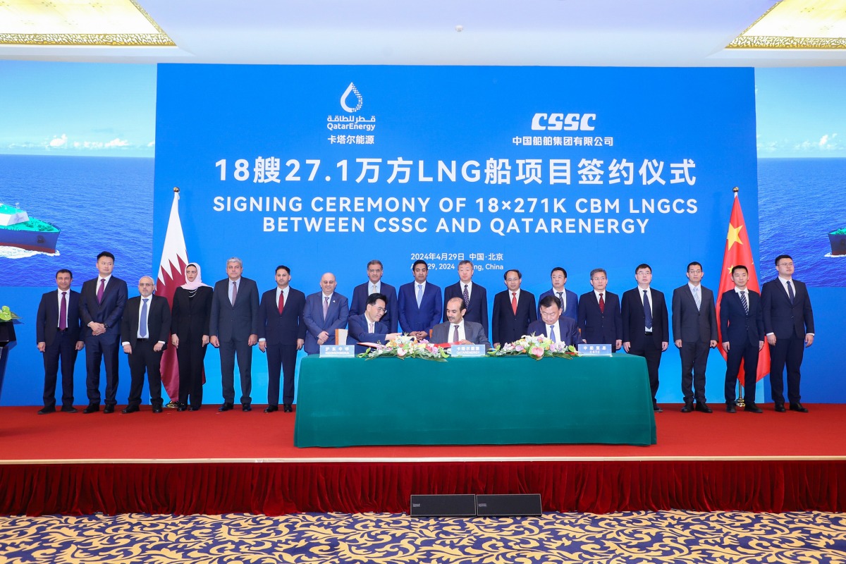 Doha, Qatar: QatarEnergy signed an agreement with China State Shipbuilding Corporation (CSSC) for the construction of 18 ultra-modern QC-Max size LNG vessels, marking a significant addition to its historic LNG fleet expansion program.