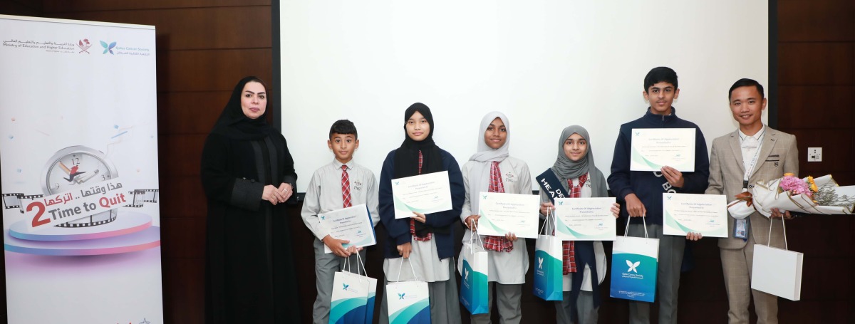 Doha, Qatar: Qatar Cancer Society (QCS) organized an award ceremony for ‘Time to Quit’ contest winners, launched this May for the second consecutive year. The contest targeted middle and high school students, coinciding with the celebration of World No Tobacco Day, observed annually on May 31. The competition was held in collaboration with the Ministry of Education and Higher Education to raise awareness about the dangers of tobacco, the importance of quitting, and promote a healthy lifestyle.