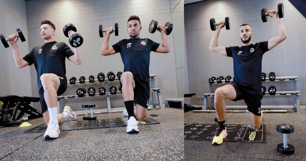 Al Sadd players gear up for their second Group B match of the King Salman Club Cup.