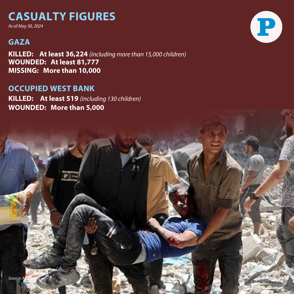 The Israeli occupation murdered at least 36,224 Palestinians and injured at least 81,777 others since the beginning of its ongoing aggression on the Gaza Strip since October 7, 2023. Read more.