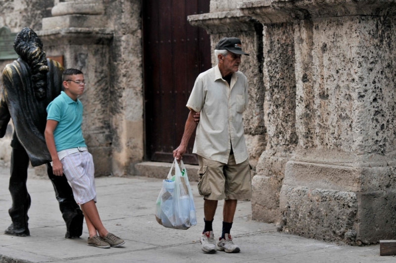 An old man walks along a street of Havana, on June 3, 2019. AFP / Yamil Lage