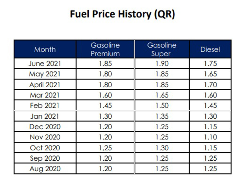 In April 2016, the Ministry of Energy and Industry had started pegging the fuel prices to the international market and from September 2017, it is Qatar Petroleum who is announcing the monthly price list.