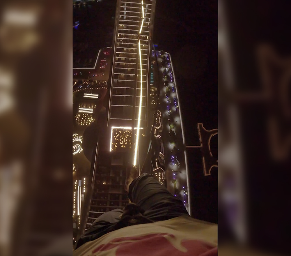 The Estonian slackliner took on the challenge and covered a distance of over 150-metres, on a 2.5cm wide LED Highline suspended more than 185 metres high on both ends of Raffles and Fairmont Doha, one of the country's architectural wonders.