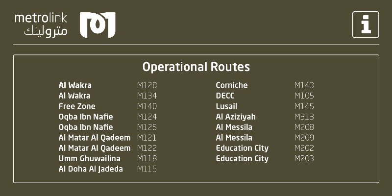 Metrolink is a feeder bus or van service, which connects residential and commercial areas to the nearest Doha Metro station.
