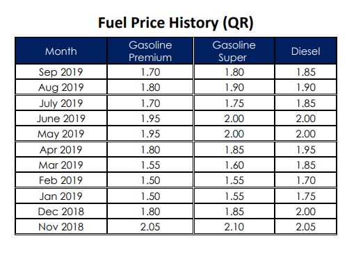 In April 2016, the Ministry of Energy and Industry had started pegging the fuel prices to the international market and from September 2017, it is Qatar Petroleum who is announcing the monthly price list.
