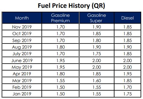 In April 2016, the Ministry of Energy and Industry had started pegging the fuel prices to the international market and from September 2017, it is Qatar Petroleum who is announcing the monthly price list.