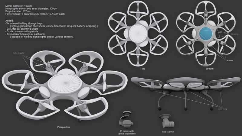 “Magnifier Hexacopter uses sunlight focus point to burn specific locations which consist of automatic flight drone height detection, AI sunlight detector, automated continuous burning root, magnifier with a rotation technique, laser point object detector for safety burning, and Shutter safety element,” a statement from Al Jefairi said.