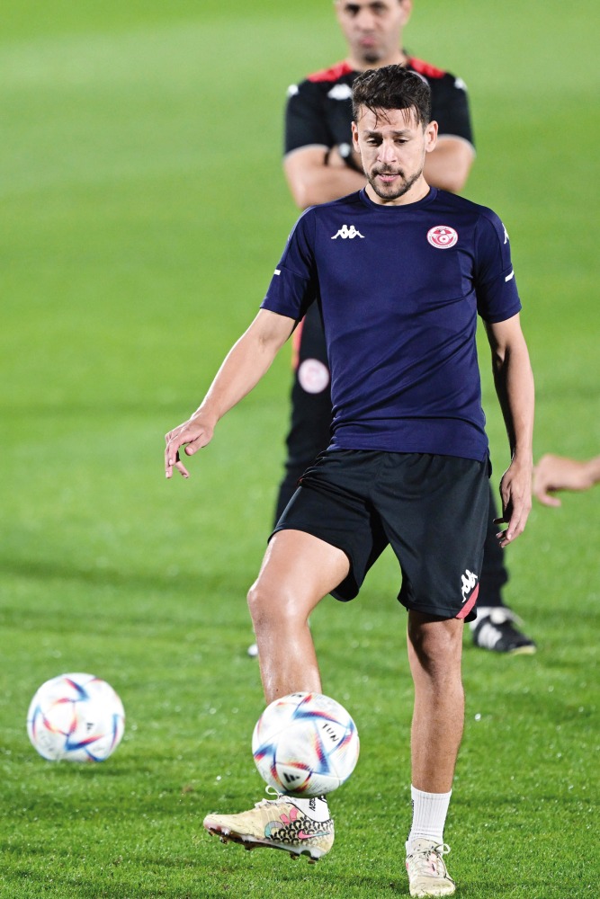Tunisia’s forward Youssef Msekni takes part in a training session yesterday.