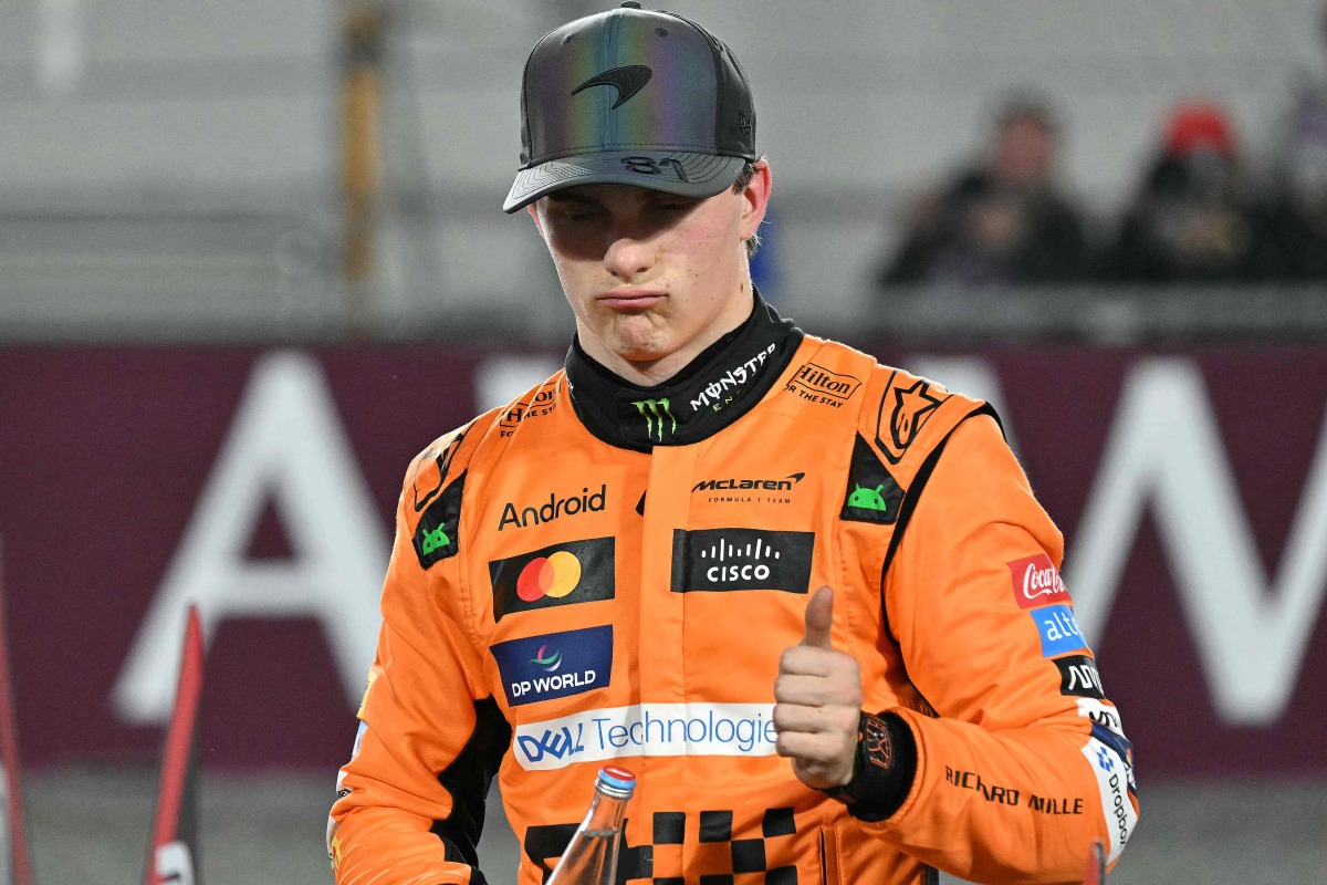 McLaren's Australian driver Oscar Piastri gestures after winning the sprint race ahead of the Qatari Formula One Grand Prix at the Lusail International Circuit in Lusail, north of Doha, on November 30, 2024. (Photo by Andrej ISAKOVIC / AFP)