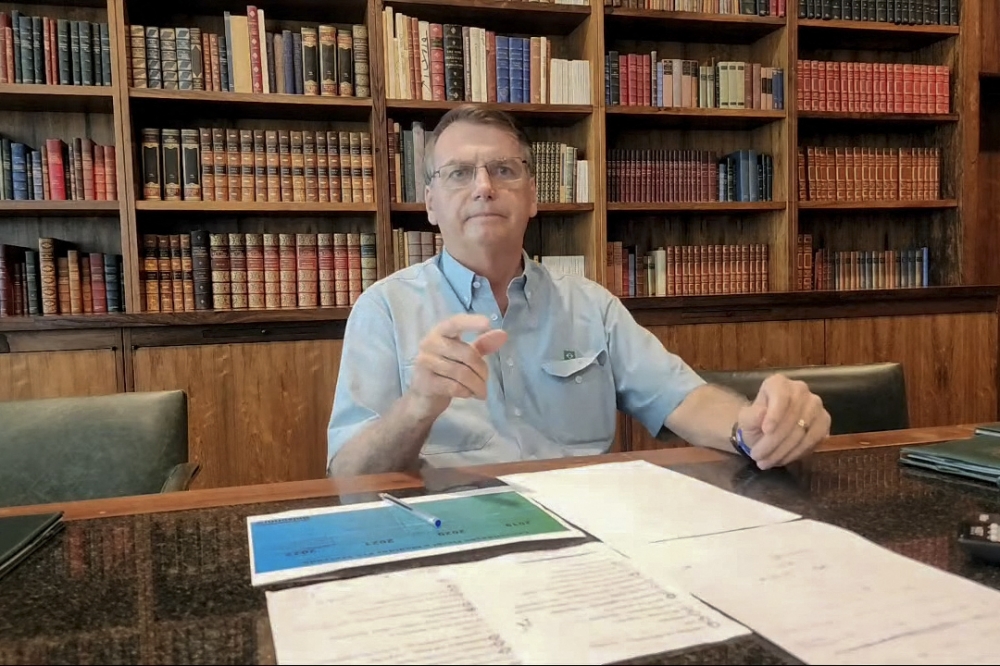 Grab taken from a handout video released by Brazilian President Jair Bolsonaro on his YouTube account on November 2, 2022, where he assured supporters that "we will not see the world end on January 1" when leftist Lula takes office, in Brasilia, on December 30, 2022. (AFP)