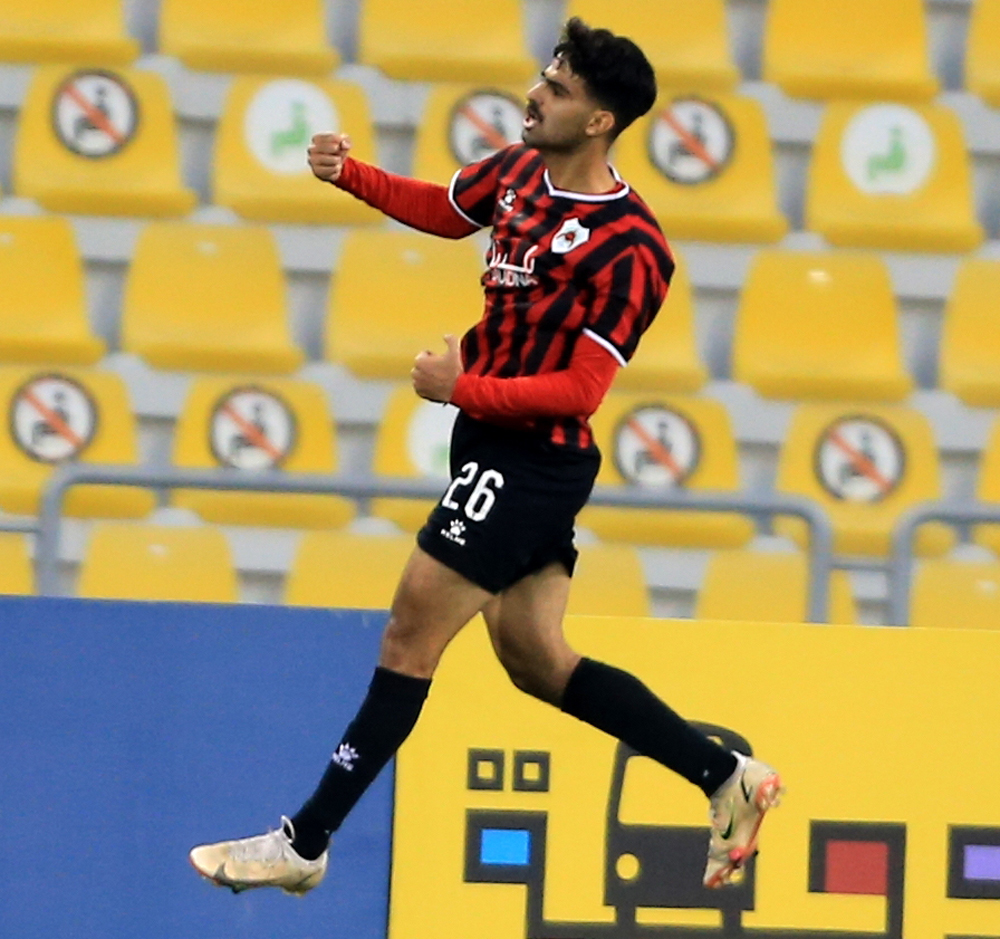 Osamah Al Tairi celebrates after scoring Al Rayyan's second goal against Al Shamal.
