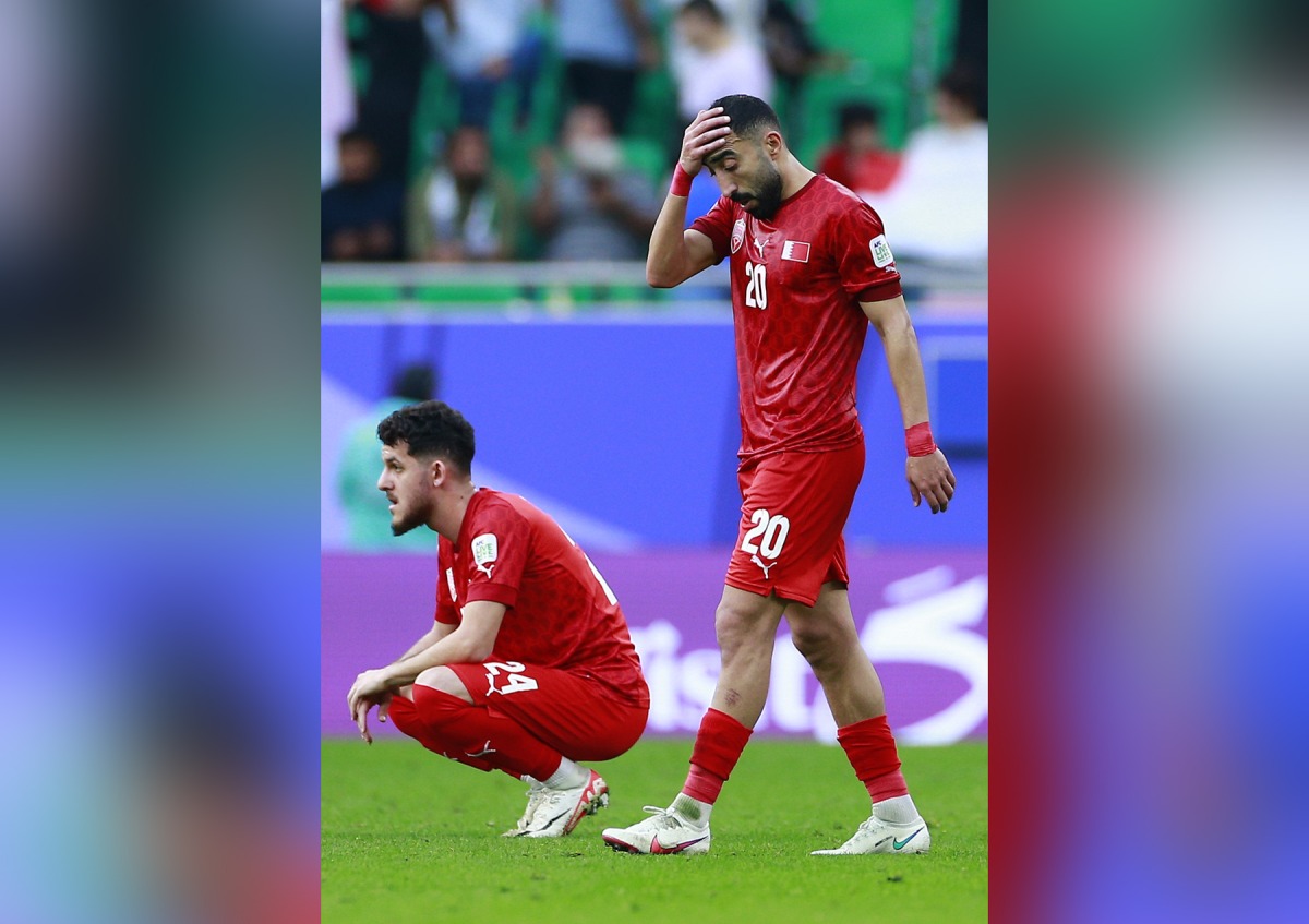 Bahrain players look dejected after the defeat. Pictures: Rajan Vadakkemuriyil/The Peninsula