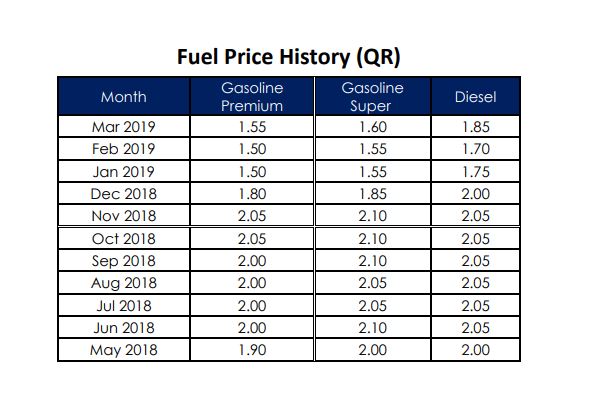 Super will be available for QR 1.85 in April, 25 dirhams more than March.