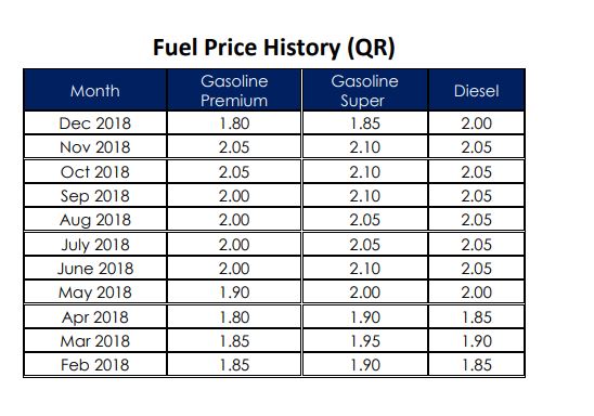 The diesel prices have also been reduced by 25 dirhams to QR 1.75.