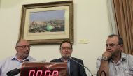 Panagiotis Lafazanis, former Energy Minister of the SYRIZA coalition government, addresses to journalists during a press conference in the Parliament building, in Athens,...