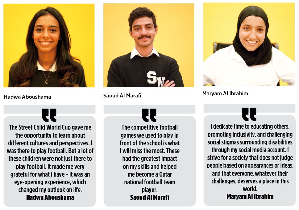 For 18-year-old Qatar Academy Doha (QAD) graduate Saoud Al Marafi, football is a way of life, and is a tool that has helped to develop a variety of social and academic skills. Speaking about what he will miss when he leaves QAD, he said: “The competitive football games we used to play in front of the school is what I will miss the most. These had the greatest impact on my skills and helped me become a Qatar national football team player.