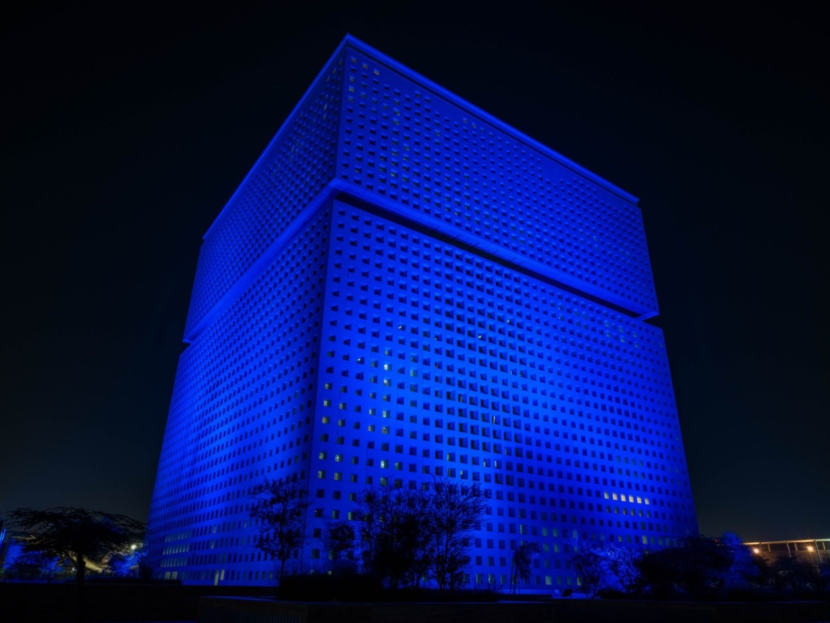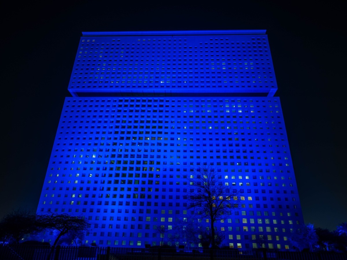 The colour blue is associated with calmness and tranquility, and in the context of World Autism Awareness Day, it represents hope, support, and understanding for people with autism. The lighting-up of the 2015 Building, and other Education City landmarks – the Education City Stadium, Sidra Medicine, and Qatar National Convention Centre – is designed to help spread autism awareness and encourage public support for those with autism.