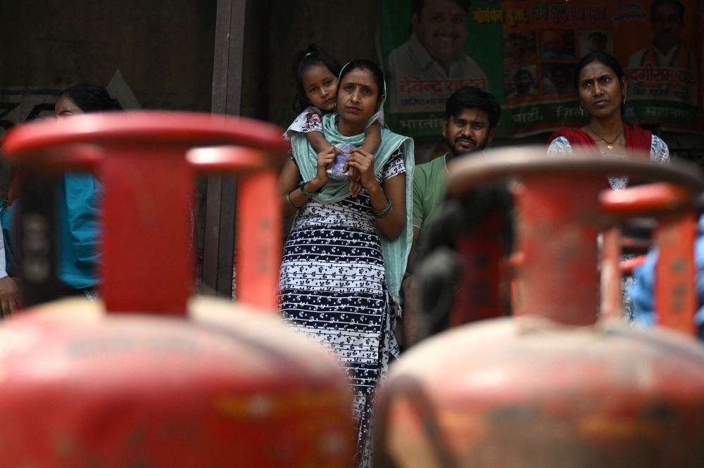 People queue up to buy liquefied petroleum gas (LPG) cylinders at a gas agency office in Noida on April 2, 2026 amid ongoing oil and gas import disruptions caused by the Middle East war. India is the world's fourth-largest buyer of liquefied natural gas (LNG) and second-largest buyer of LPG, which is used for cooking and predominantly sourced from the Middle East.