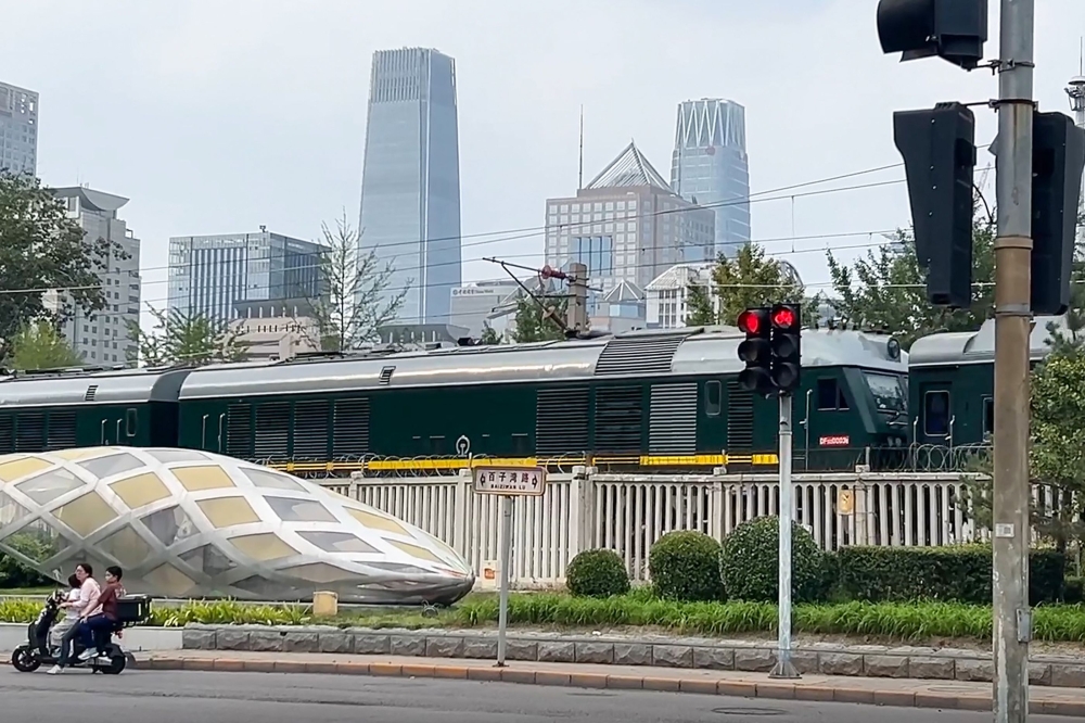 This frame grab made from AFPTV video footage taken on September 2, 2025 shows a train believed to be carrying leader Kim Jong Un in Beijing. (Photo by AFPTV / AFP)
