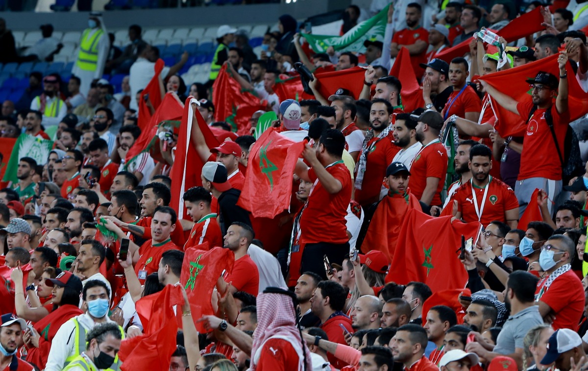 Morocco fans celebrate after their team beat Palestine 4-0 yesterday. Pictures: Rajan