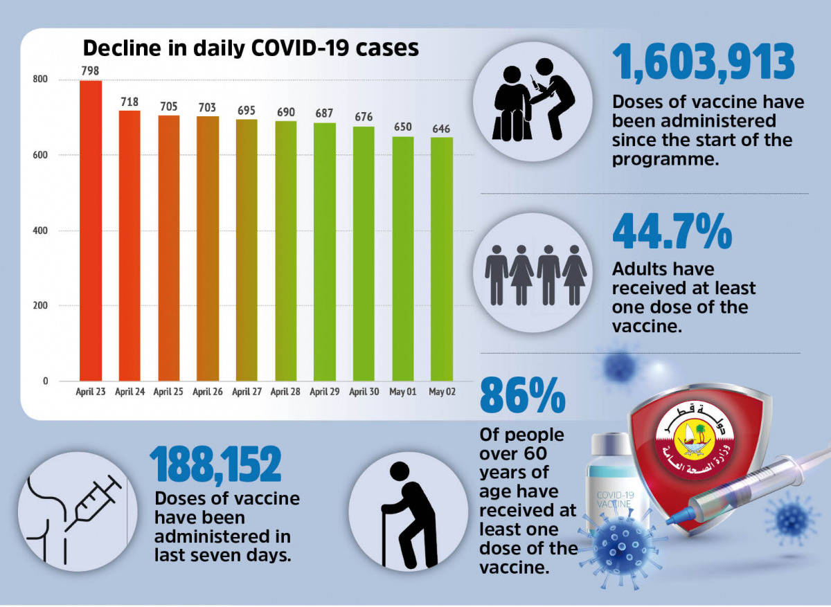 According to COVID-19 report issued by the Ministry, number of daily cases has decreased in the past ten days. While, 798 new cases were reported on April 23 and 646 new cases were reported yesterday.